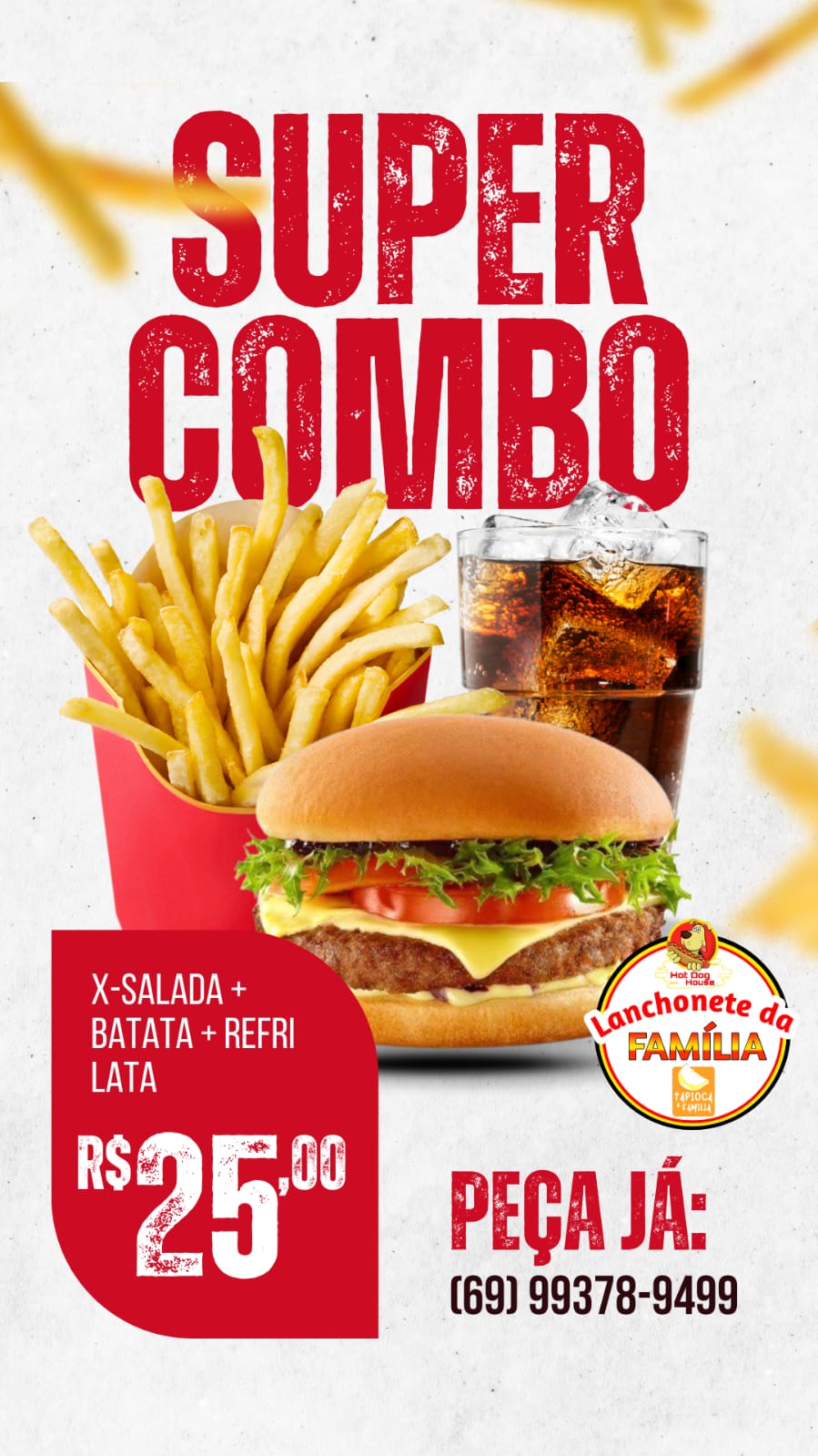 Quatro x-salada + batata frita G + refrigerante 2L.
